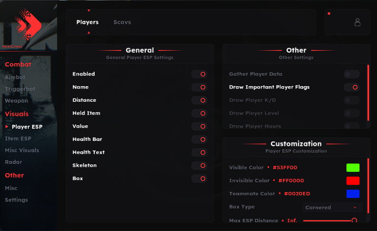 - Chams (özelleştirilebilir renkler)