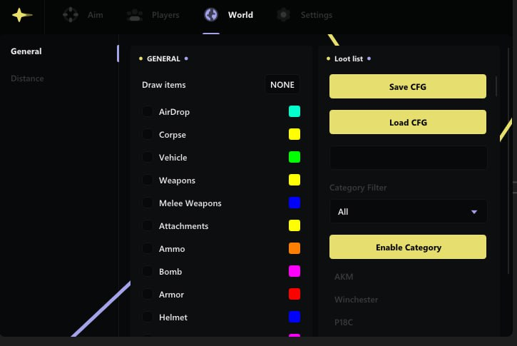 - Kategori Filtresi (Silah ve diğer ganimet seçimi)