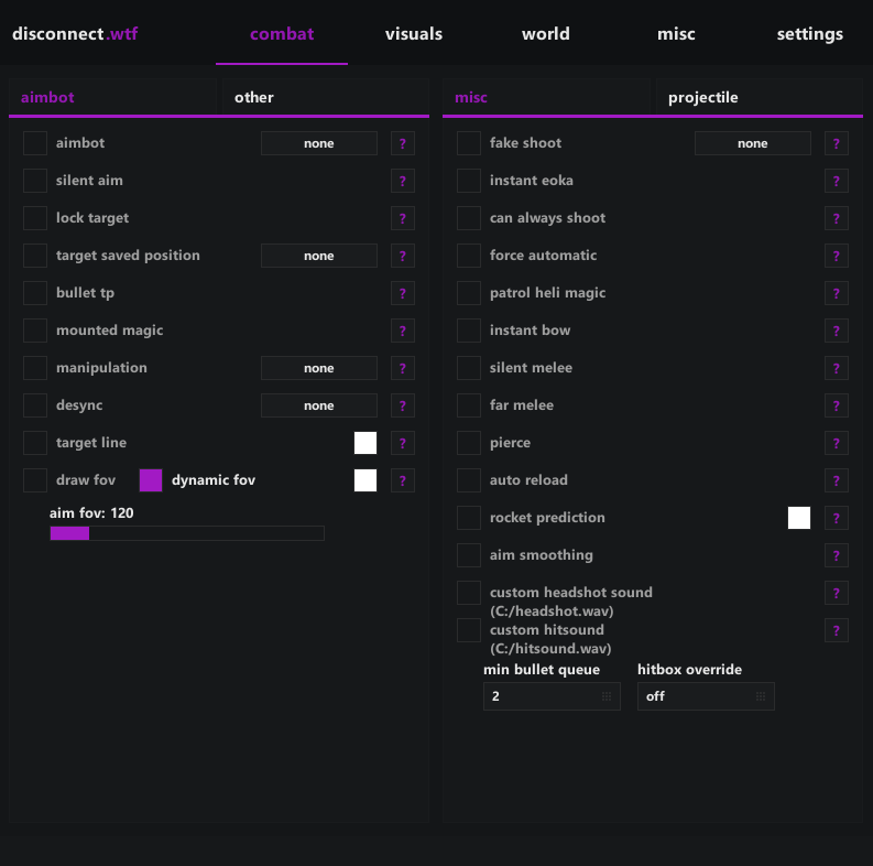 - Hitbox Geçersiz Kılma (Kapalı, Head, Chest, Foot)
