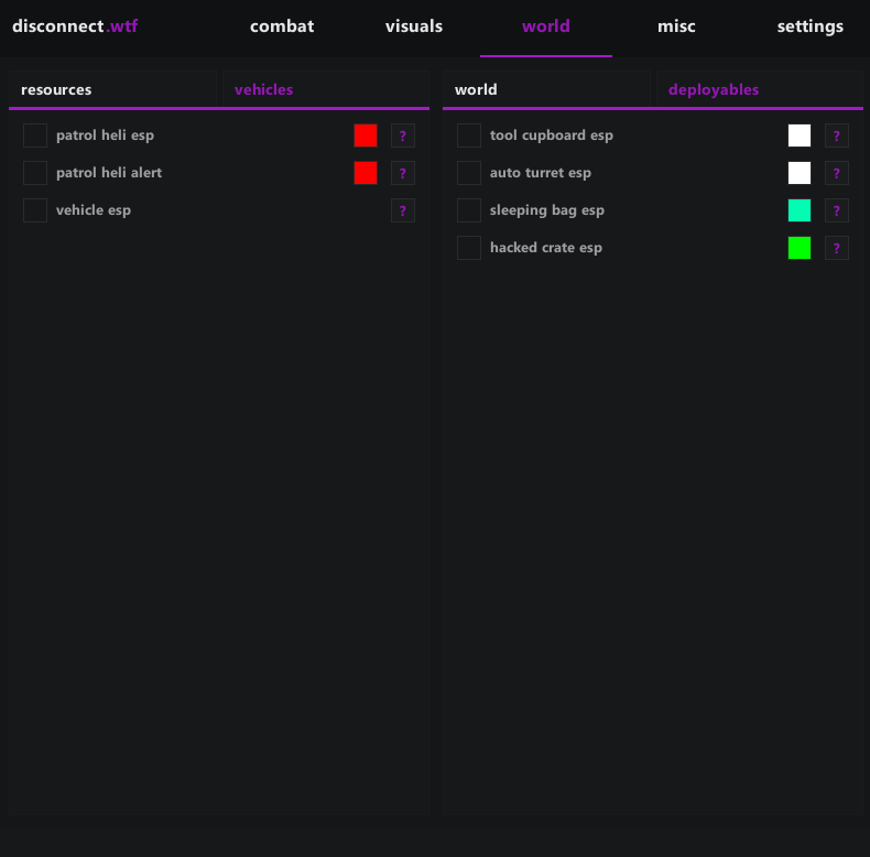 - Araçlar: Araç Adı, Araç Mesafesi; Minicopter, Scrap Heli, Tugboat